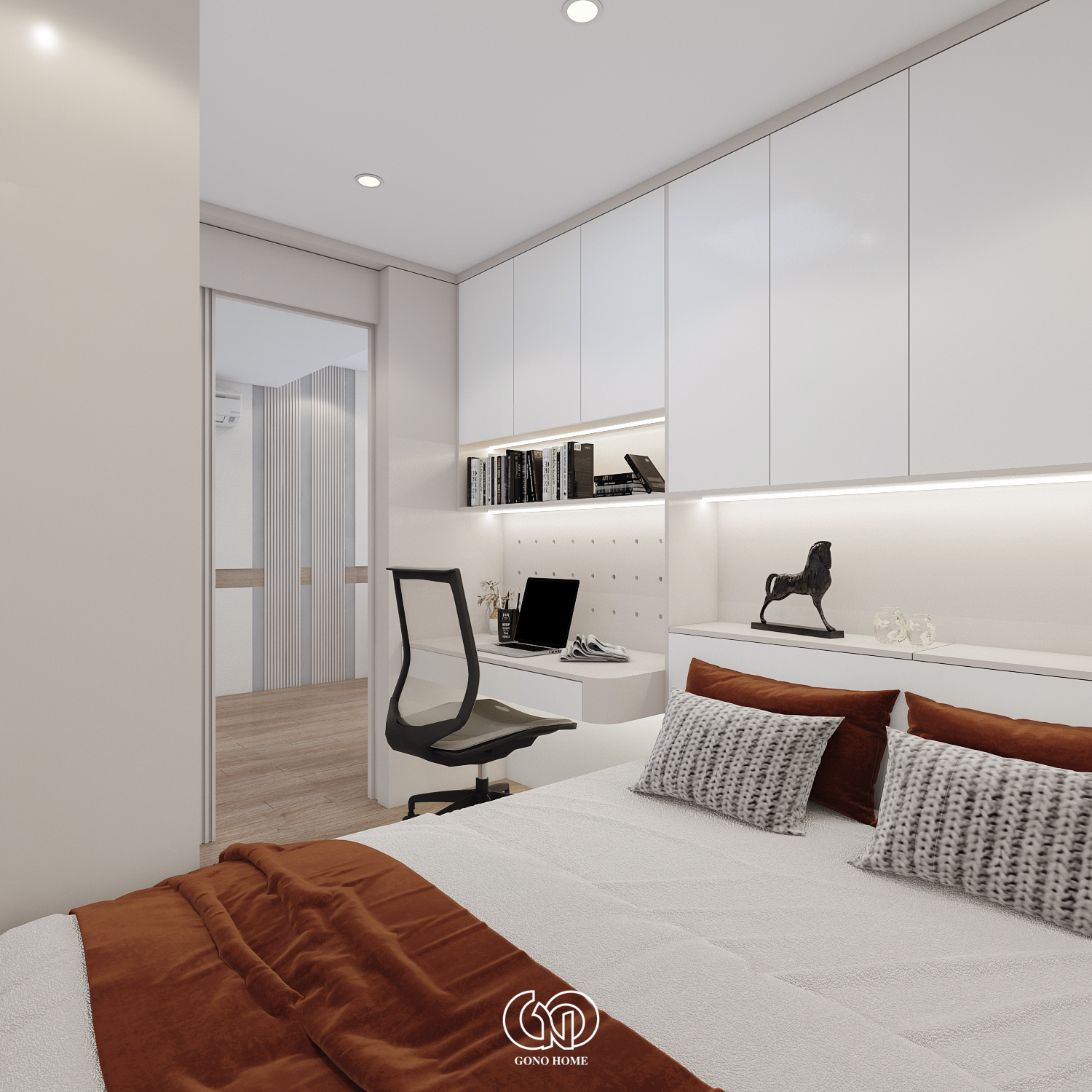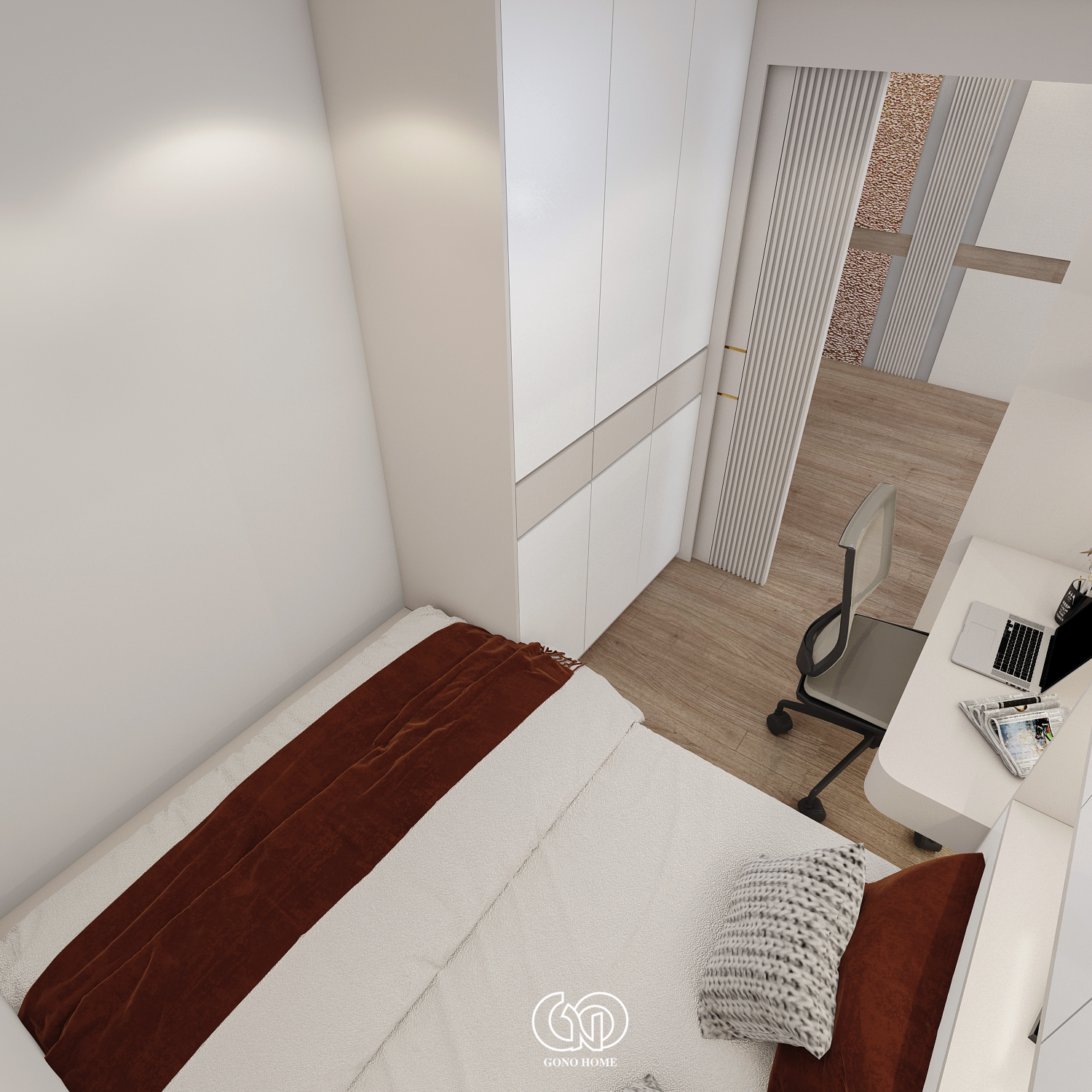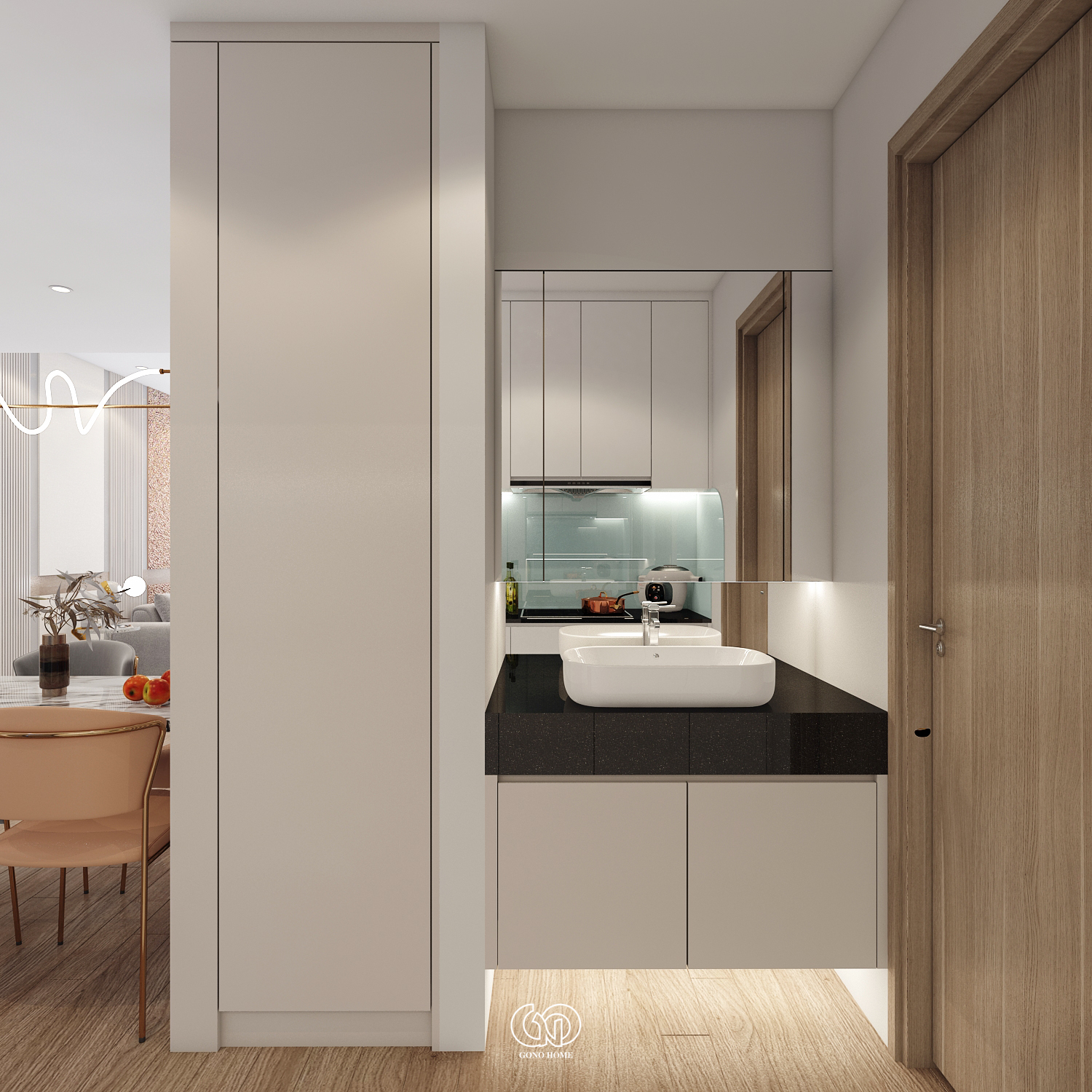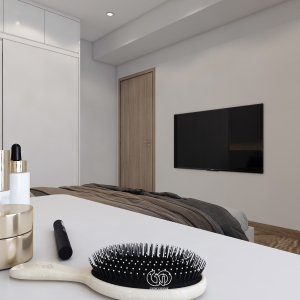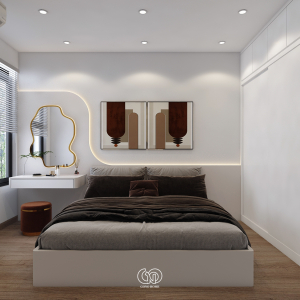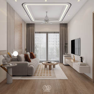 Gam màu chủ đạo là trắng – be – gỗ – cam đất, mang lại cảm giác ấm cúng, gần gũi nhưng không kém phần sang trọng.